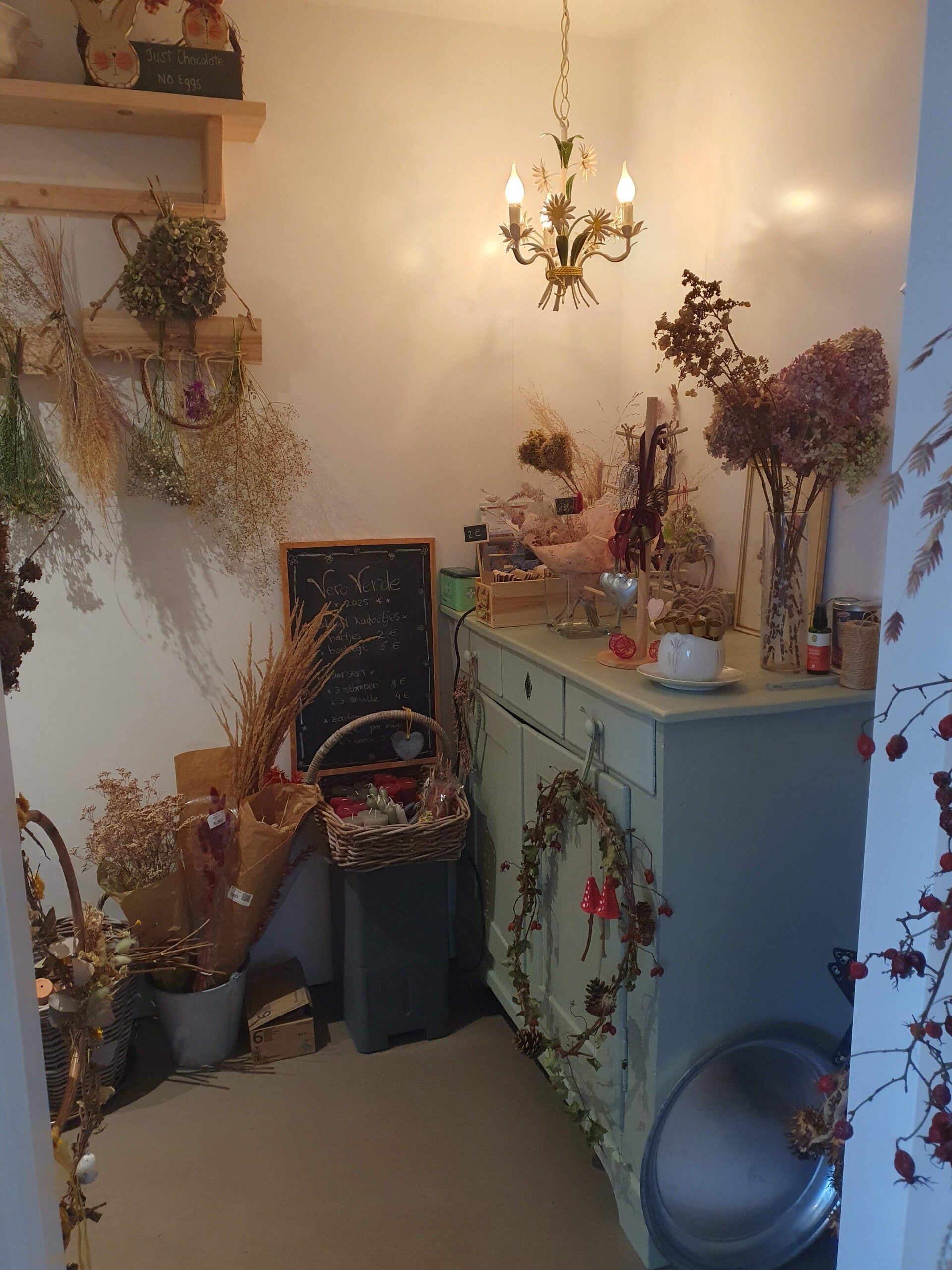 Leuk workshop weekend, 2 vriendinnen maken prachtige droogbloemenkrans op standaard en familie dag waarbij we onder anderen dit mooie droogbloemen hart hebben gemaakt.